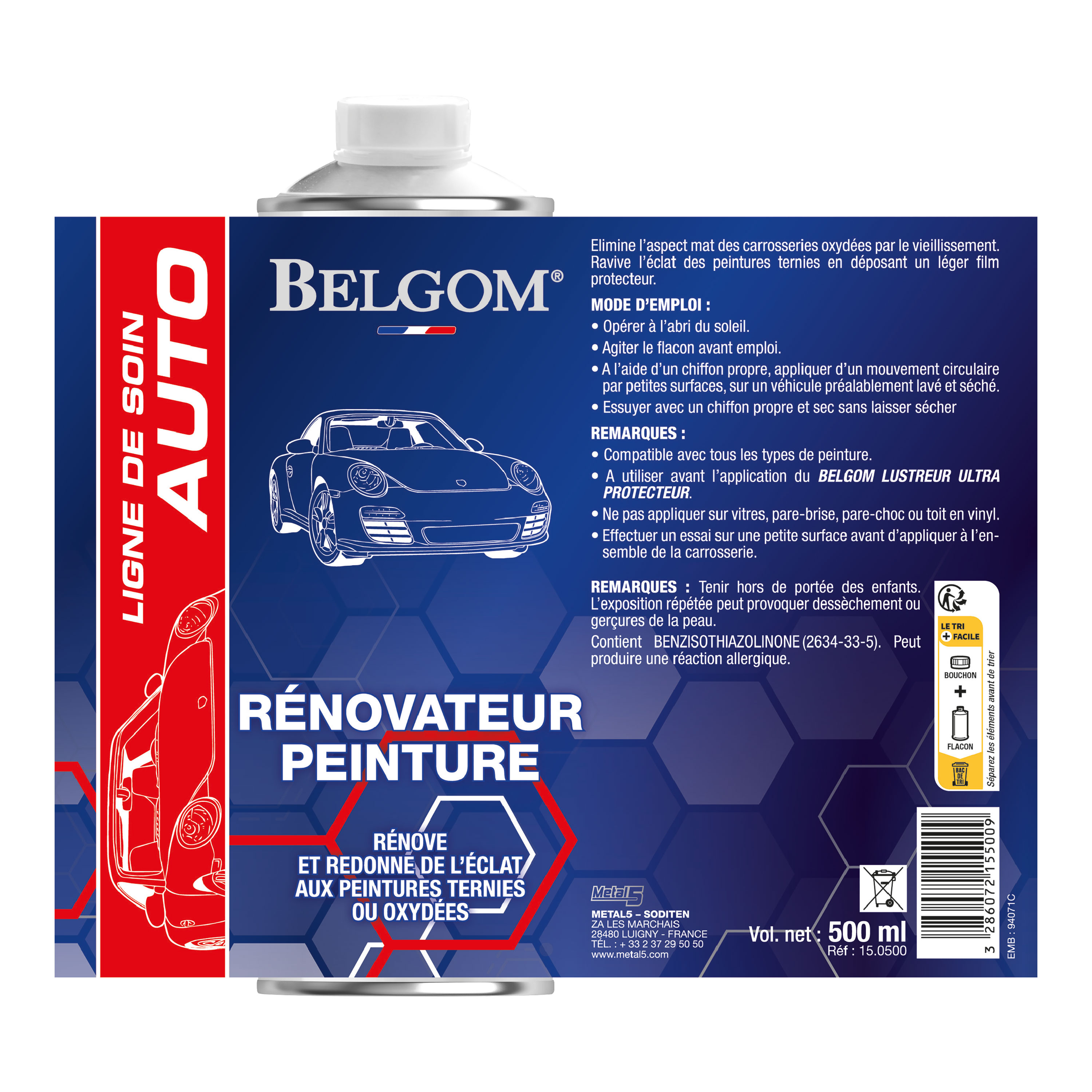 Belgom Rénovateur Peinture polit et élimine l’aspect mat des carrosseries oxydées par le vieillissement et élimine les tourbillons (lavage aux rouleaux).